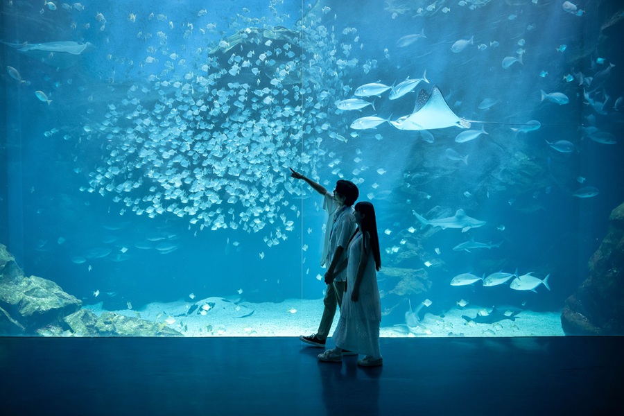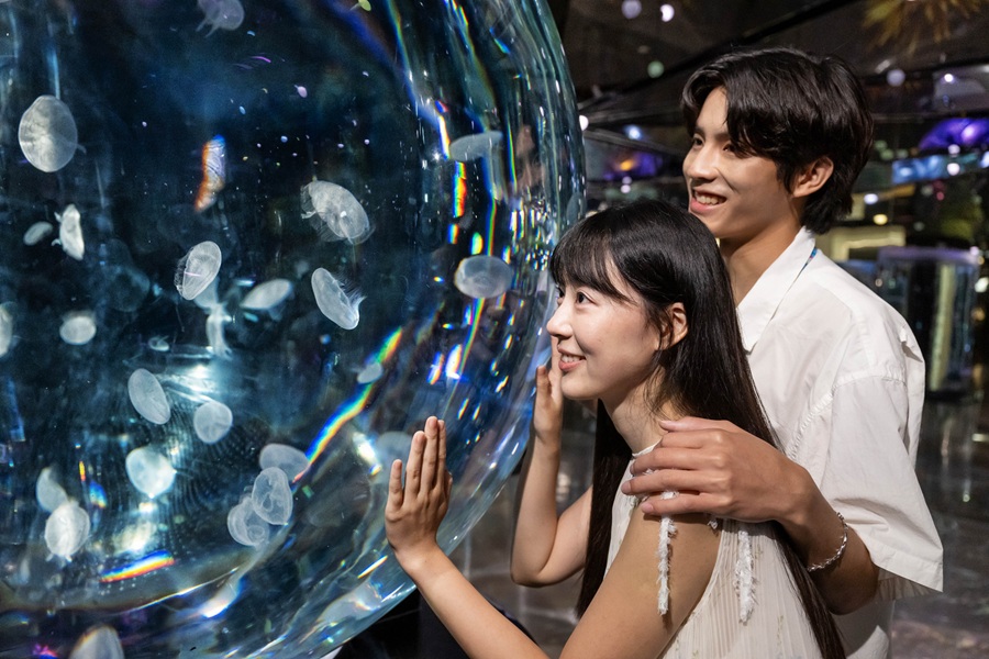陽光灑落的水槽展區,讓都市中也能感受自然之美。這裡不僅是療癒場景,更是情侶必拍的浪漫回憶。