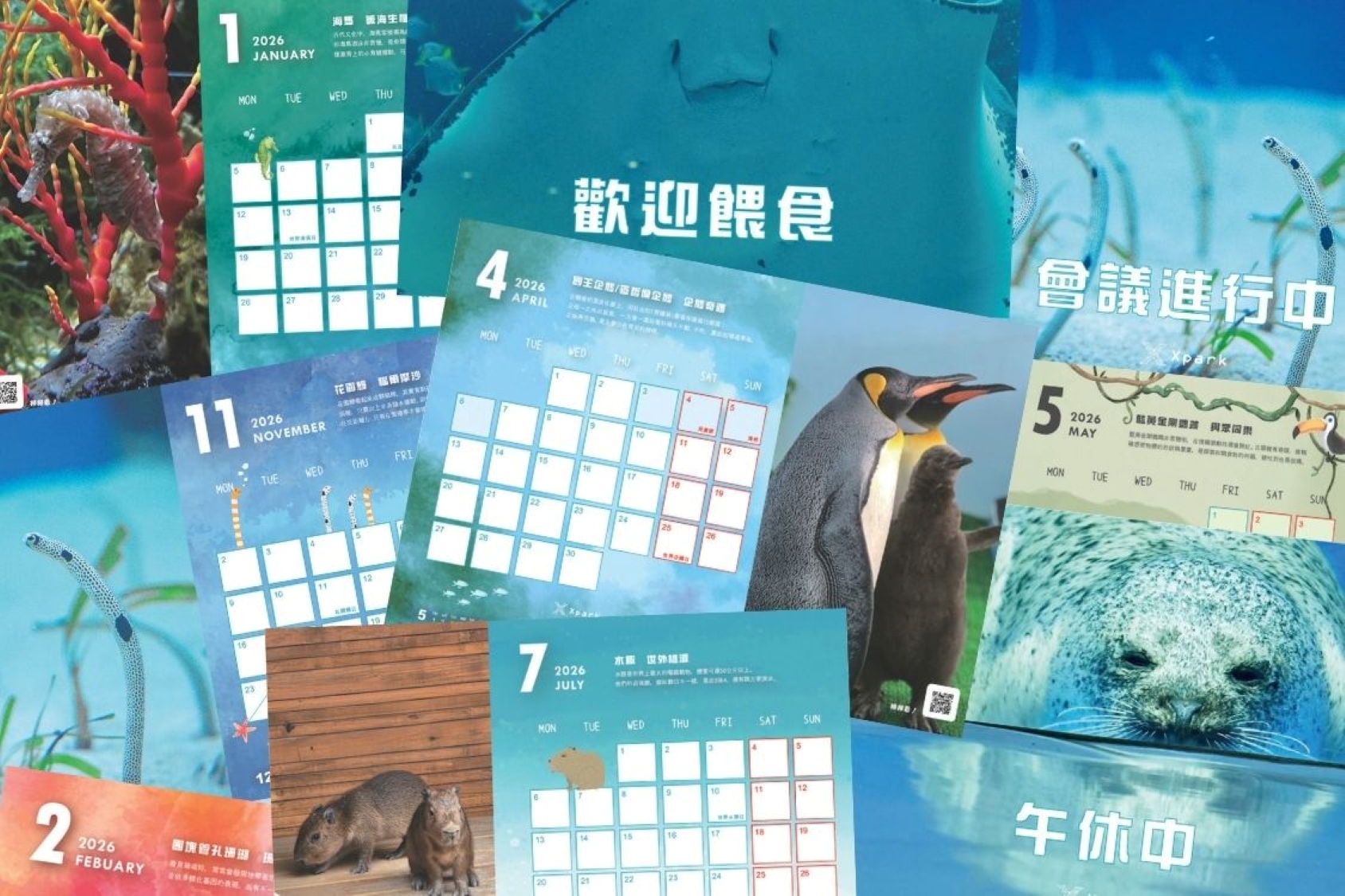 Xpark 首度推出桌上型月曆,集合了館內12種超療癒的海、陸、空生物